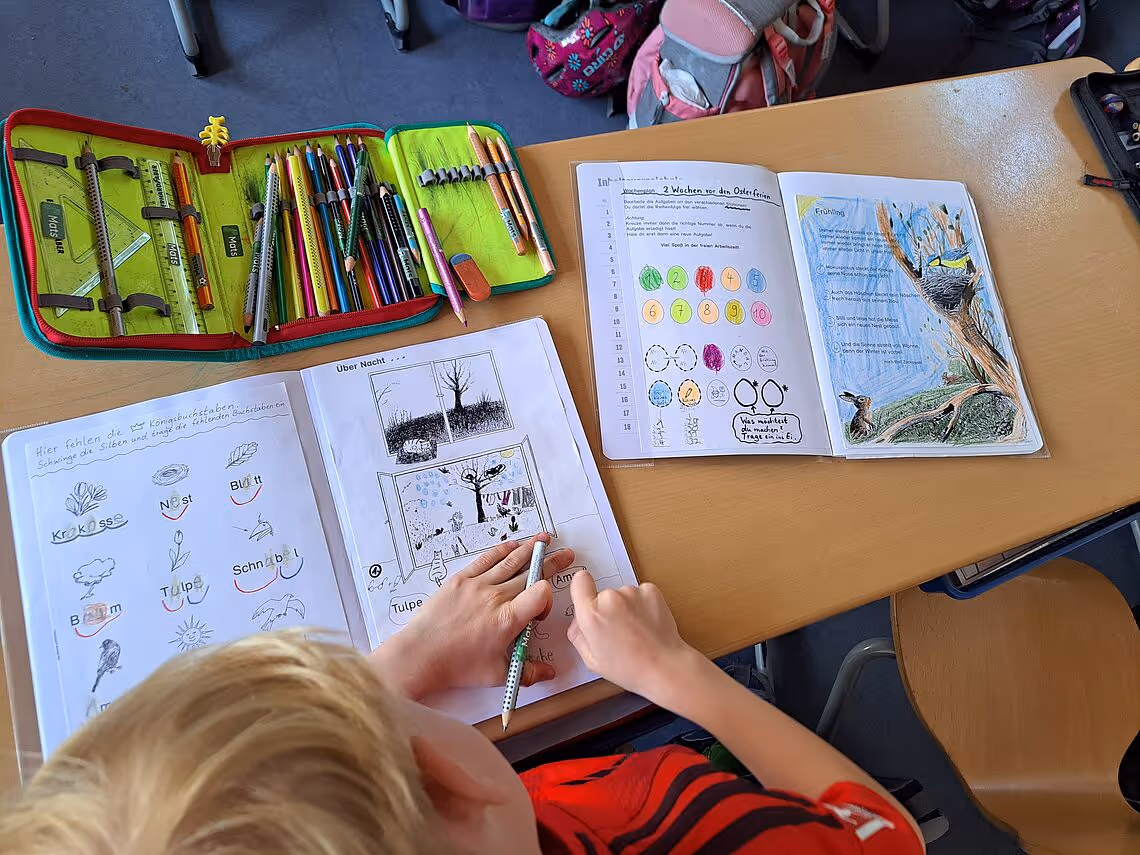 Mit Liedern und rhythmischen Begrüßungsspielen starten wir täglich in unseren Schultag. Danach geht’s los mit der Arbeit an den verschiedenen Heften sowie mit den differenzierten Hör-, Schreib- und Zählübungen.