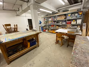 Im Bastelkeller stehen den Kindern eine Vielzahl von Materialien zur Verfügung. Hier reicht das Repertoire von Stoffresten über Bastelperlen bis zur Holzwerkstatt. Dieser Raum kann sowohl im Vormittag, als auch im Nachmittag genutzt werden. Unter anderem wird hier unsere AG "Malküche" durchgeführt.